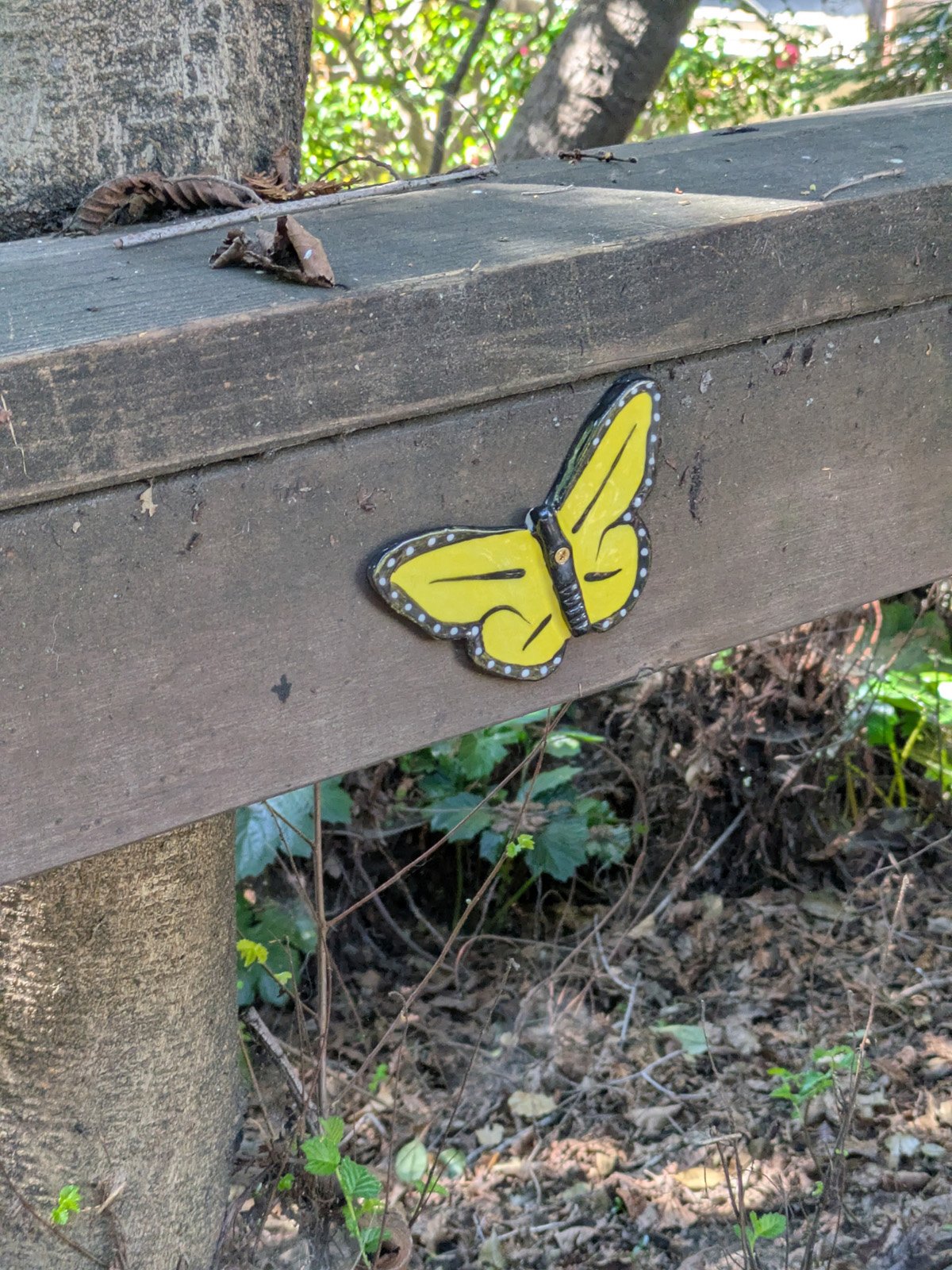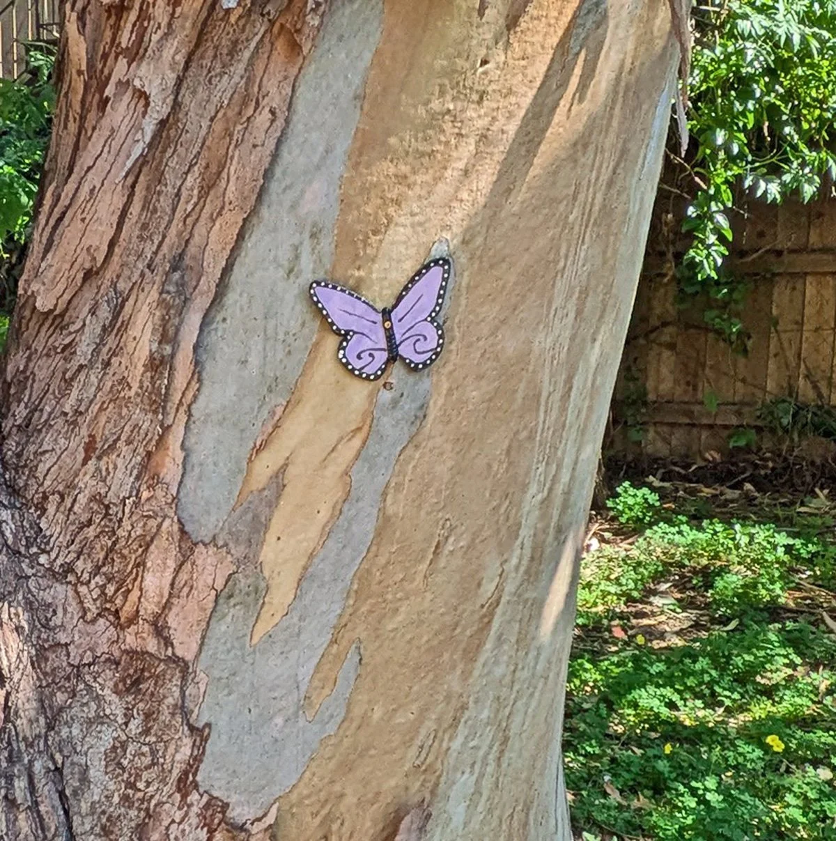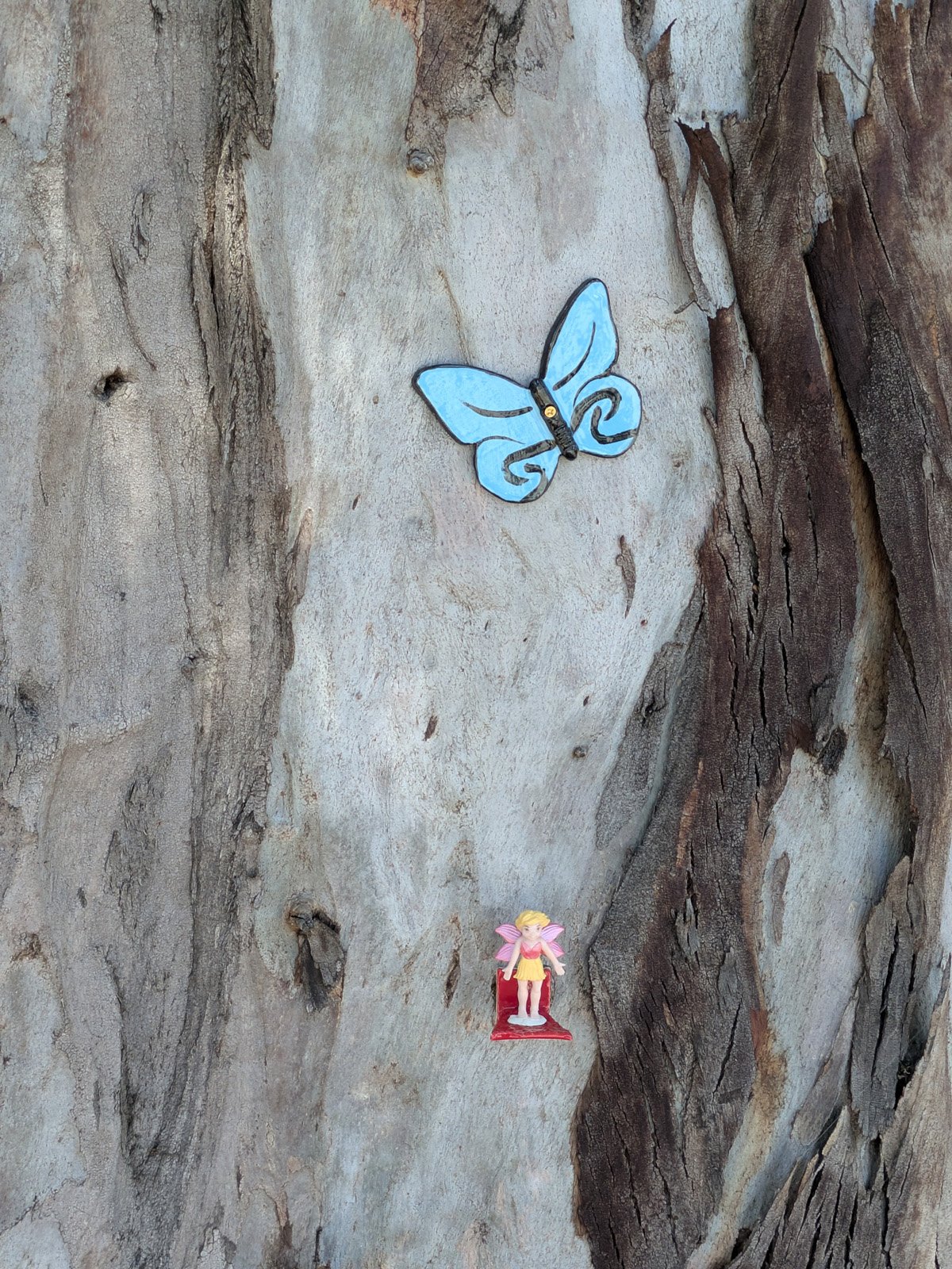 We came back to the Greenway where we previously set out fairy houses. Today it was to attach butterflies everywhere!!