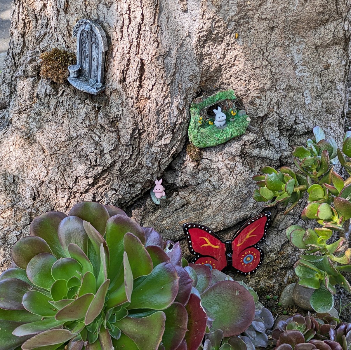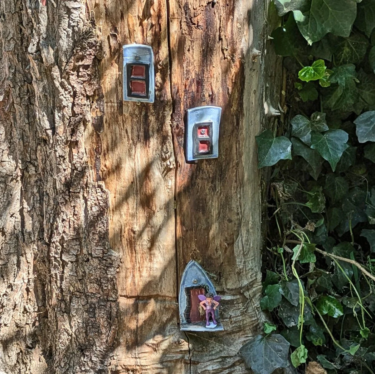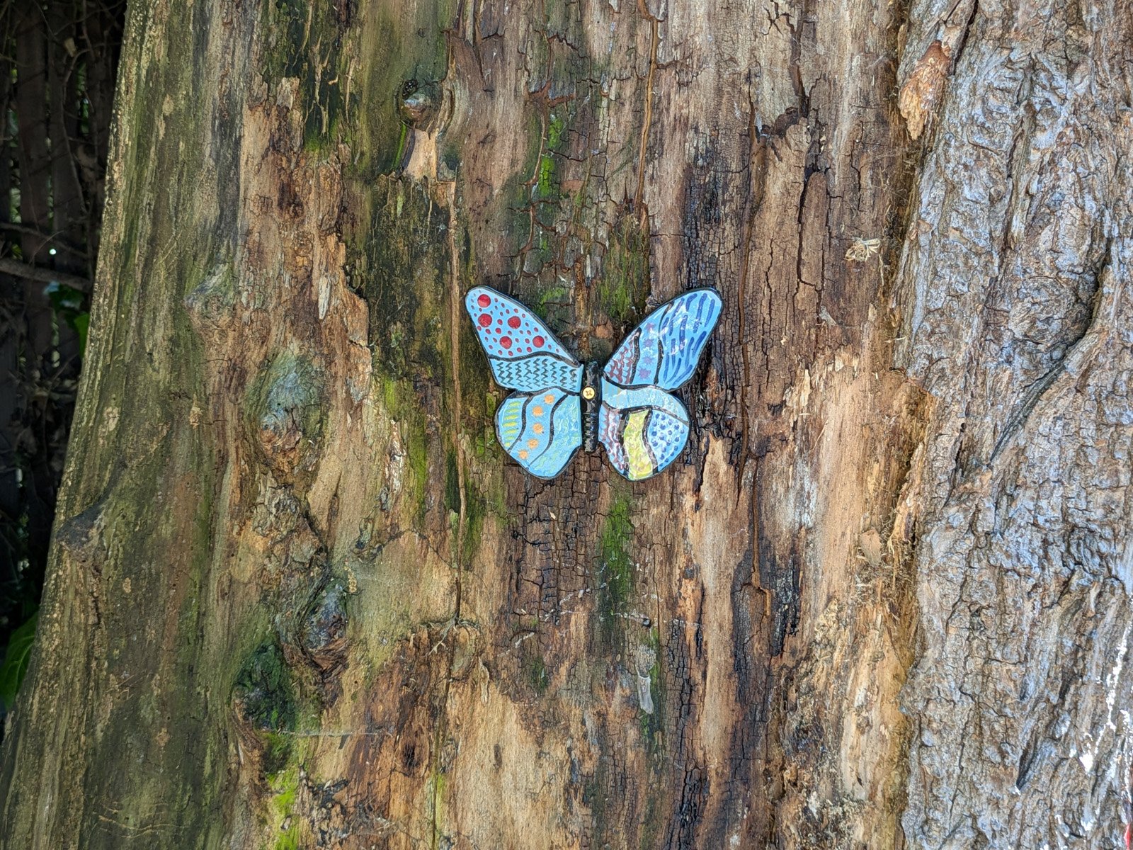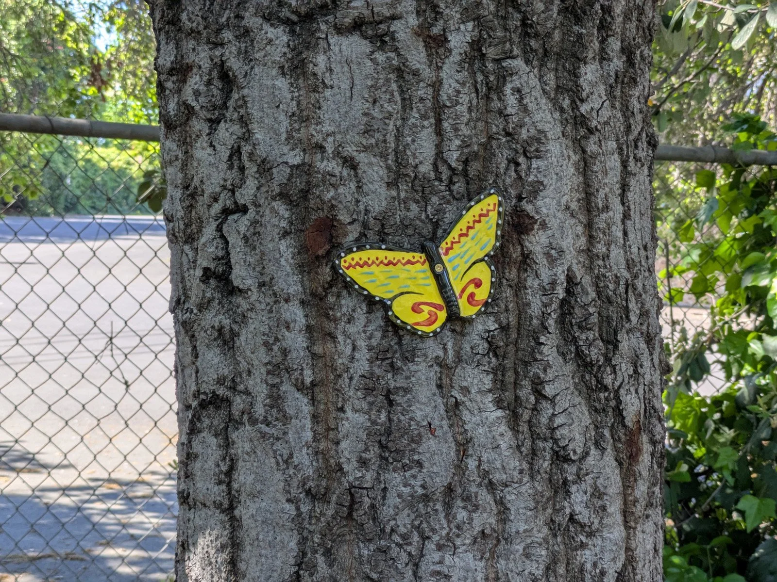 We came back to the Greenway where we previously set out fairy houses. Today it was to attach butterflies everywhere!!