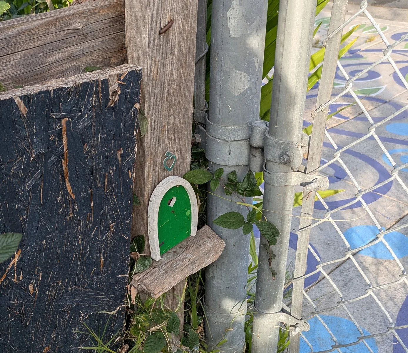 Recently Melissa and I visited Courtland Creek Park in Oakland. We met there two energetic queens of that neighborhood, Veronica and Chris. they told us all about the beautiful renovation that this park has undergone lately ad helped us find perfect spots for some fairy houses. More of the wee folk will sleep well tonight.