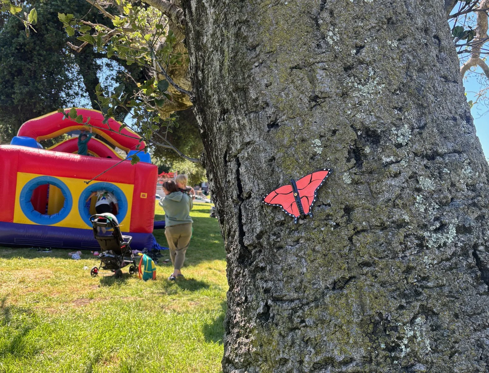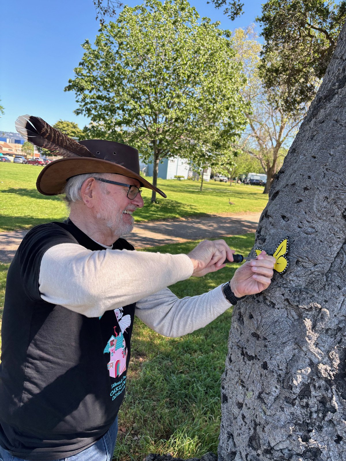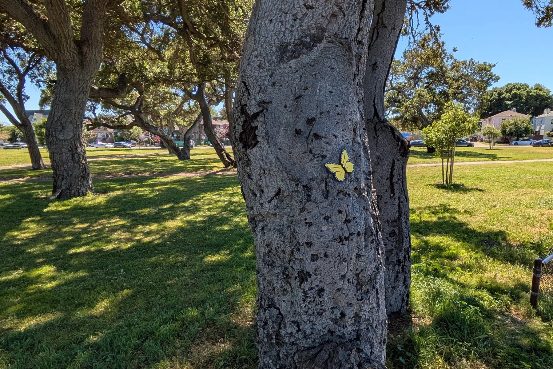 Had a great fairybombing time at DeFremery Park recently. They had a special Easter Eggstravaganza going. We showed up with butterflies, ready to add them to the trees there. Kids were having a great time and we were happy to add to the fun.